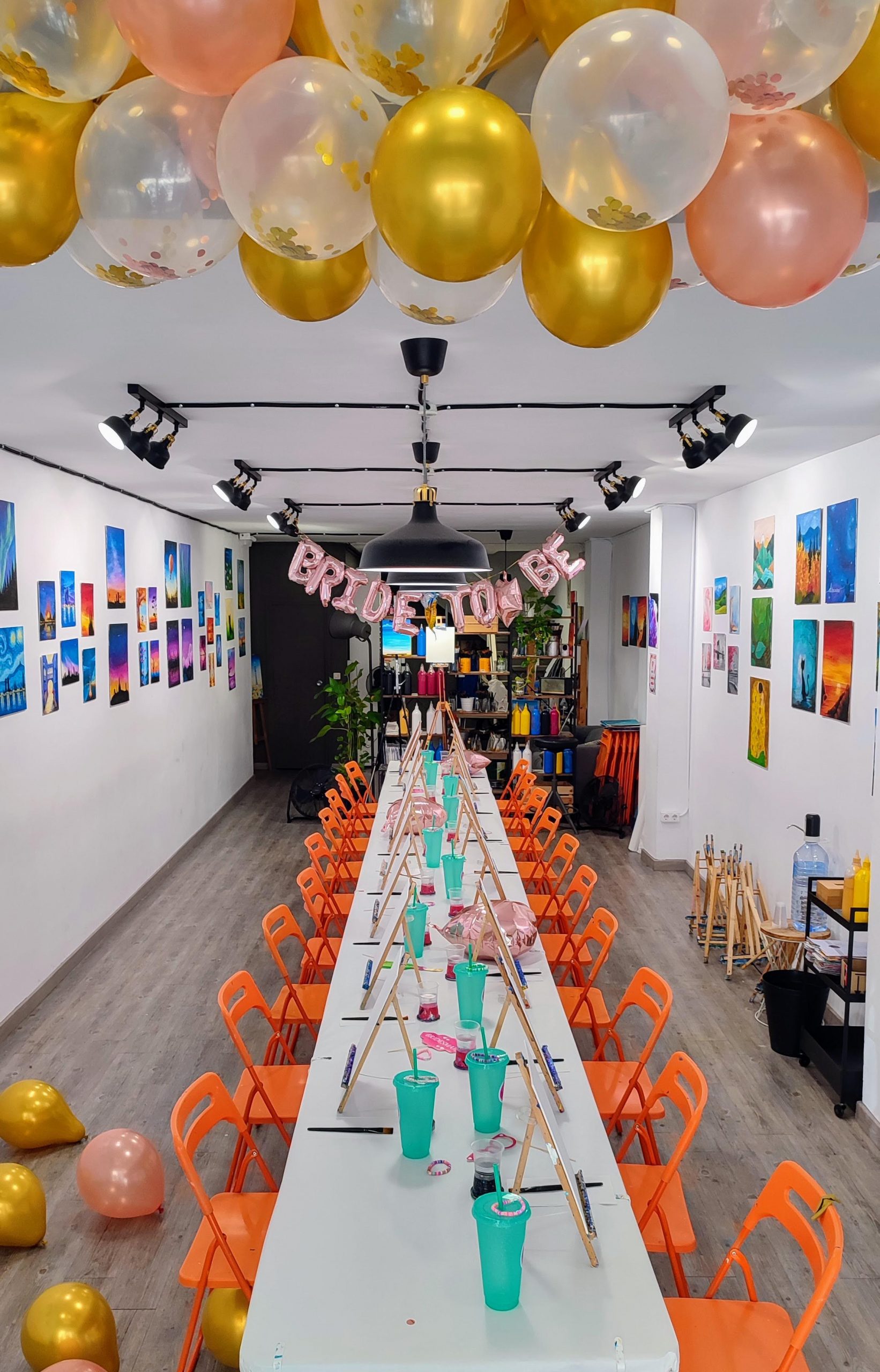 ¡Una forma inolvidable de celebrar y brindar por el amor! No sólo podréis pintar paso a paso un cuadro que llevaros de recuerdo, si no que habrá barra libre (vino, cerveza, refrescos zumos, cafés y tés, etc.) además, como tendréis la sala en privado, podréis hacer pruebas a la novia para desatar las risas contagiosas y el buen rollo.