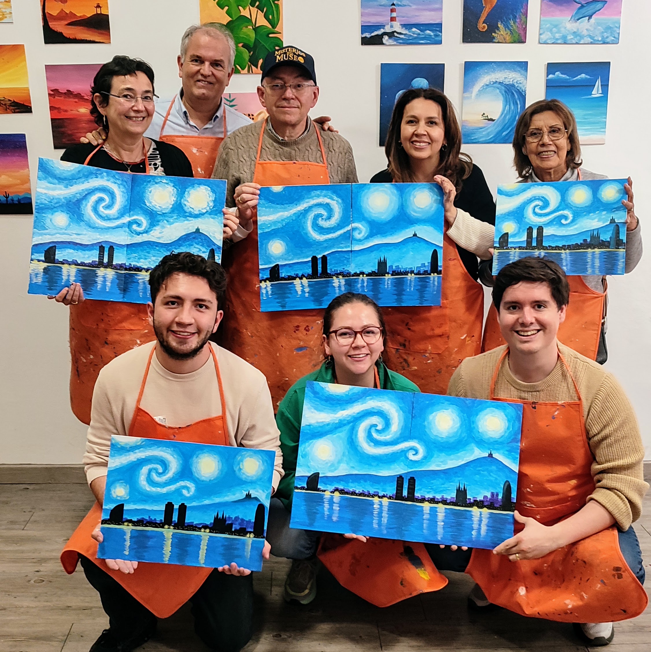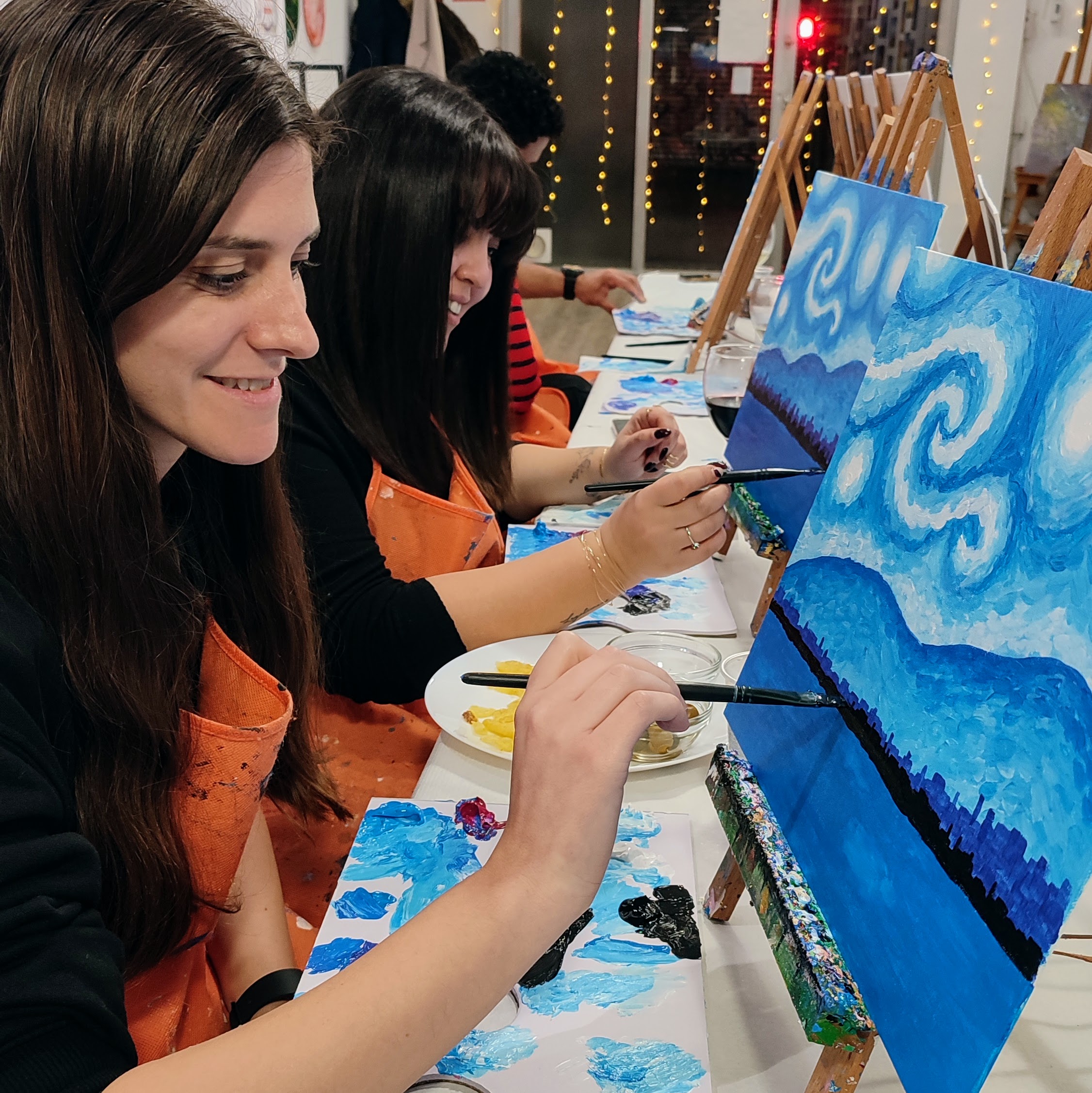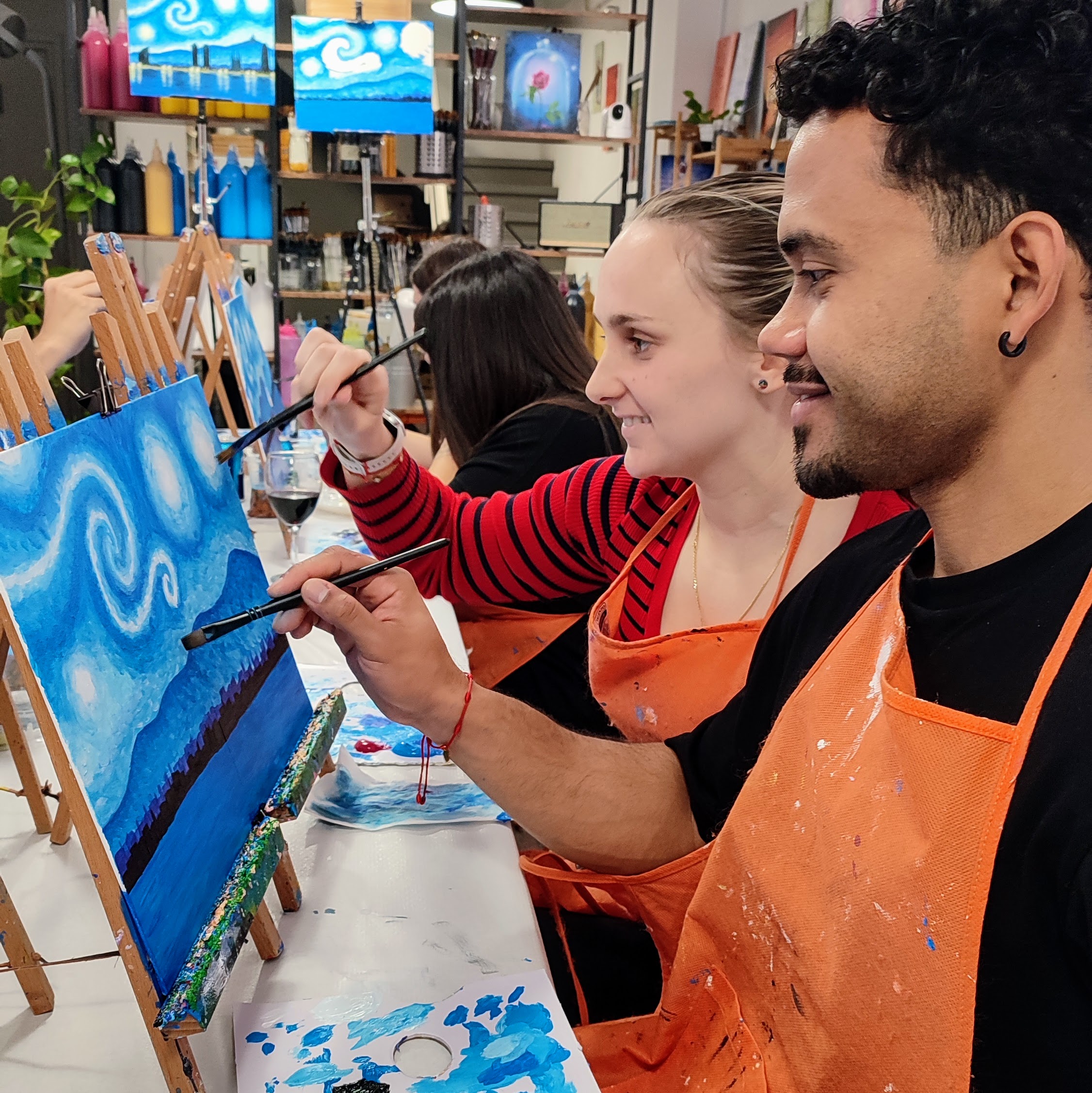 No necesitas traer nada, proporcionamos todo el material profesional para que puedas realizar tu obra maestra, ¡y te invitamos a la bebida! Habrá vino, cerveza, refrescos, zumos, café, té o agua. El ambiente perfecto para desconectar un rato, con buena música y muchas risas. ¿A qué esperas para apuntarte?