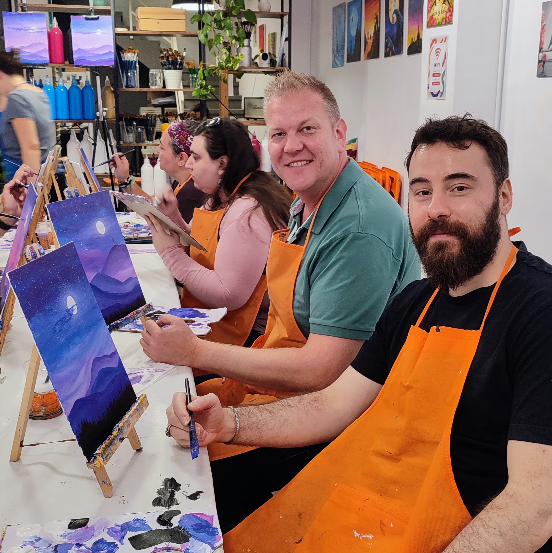 No necesitas traer nada, proporcionamos todo el material profesional para que puedas realizar tu obra maestra, ¡y te invitamos a la bebida! Habrá vino, cerveza, refrescos, zumos, café, té o agua. El ambiente perfecto para desconectar un rato, con buena música y muchas risas. ¿A qué esperas para apuntarte?